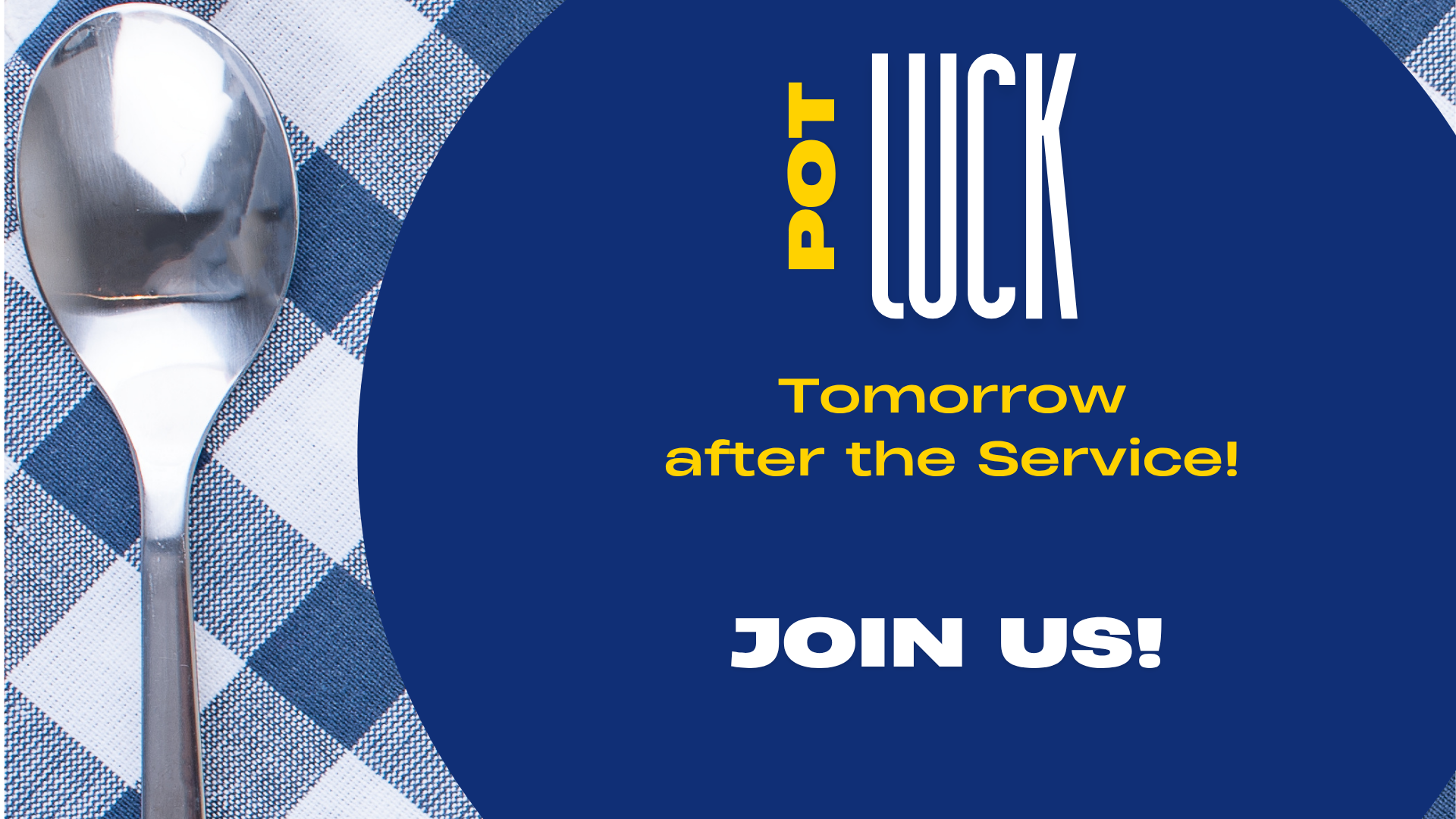 NEWS JUST IN – POT LUCK TOMORROW!